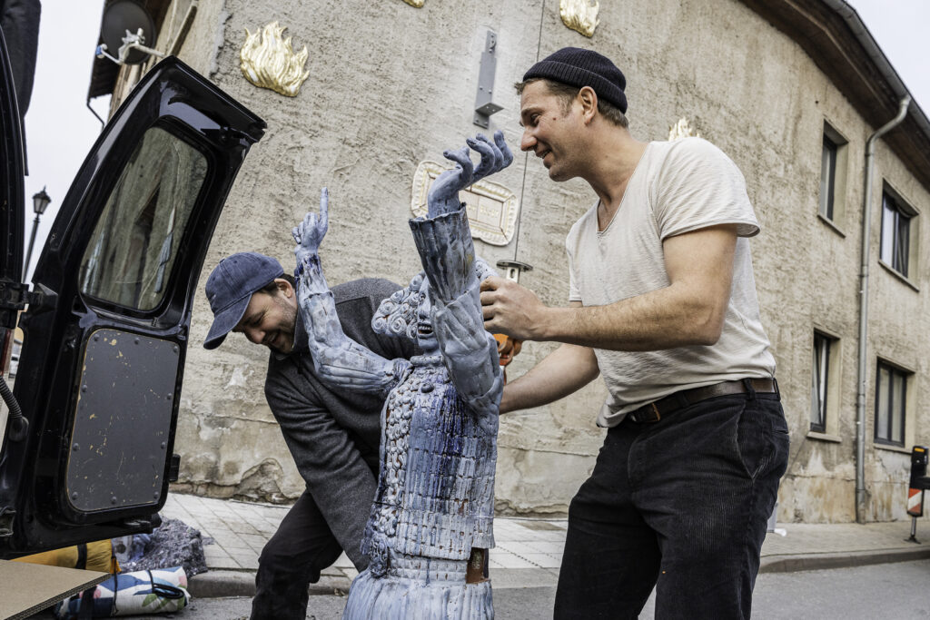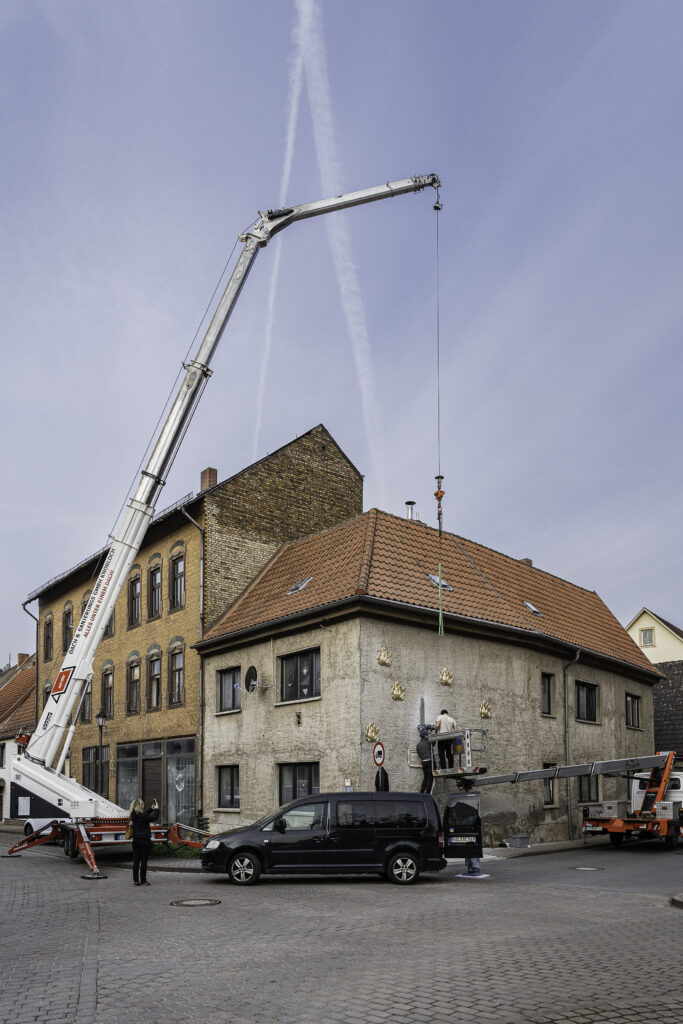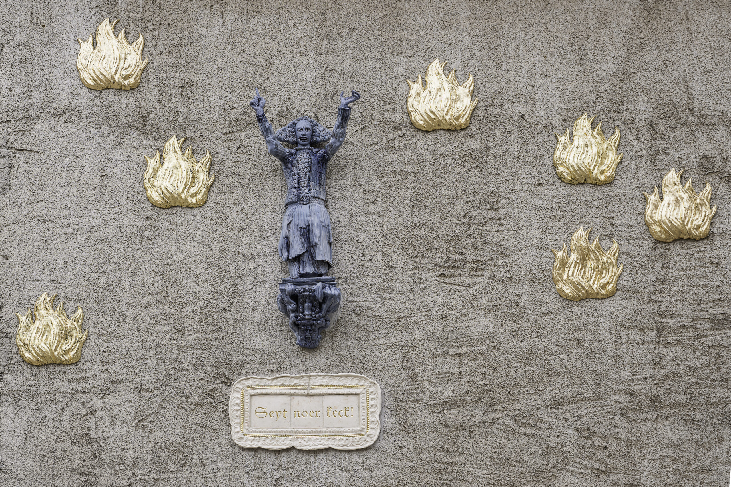 Der Bildhauer Hermann Grüneberg hat für eine große Hauswand im Stadtkern von Allstedt am Bäckerplatz eine keramische Installation mit dem den Titel „Seyt noer keck!“, ein Aufruf aus Thomas Müntzers „Fürstenpredigt“, geschaffen. Die Familie, die das Haus mit der Installation in Allstedt bewohnt, will das Kunstwerk dort dauerhaft belassen.