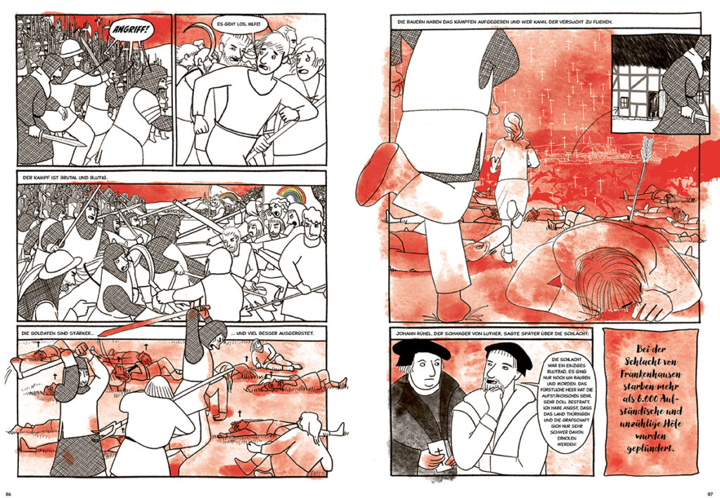 Die Illustratorin Lucie Göpfert hat eine Graphic Novel für Kinder und Jugendliche entwickelt: „Ein irrer Rebell oder irre rebellisch? Ein Mitmach-Comic zum Leben von Thomas Müntzer“. Das Buch beschäftigt sich in zehn Kapiteln mit Müntzers Leben und Wirken sowie den Lebensbedingungen, Konflikten und Herausforderungen seiner Zeit.