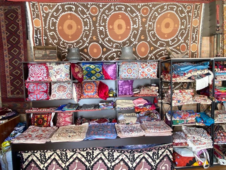 Das reichhaltige Erbe umfasst Teppichweberei, Holzschnitzerei, Kupferprägung, usbekische Keramik, Puppen, Textilien, Schmuck, Stickereien, Goldstickereien und mehr. Diese Künste, basierend auf lokalen Traditionen, Volksweisheiten, überliefertem Erbe und Familientraditionen, haben sich über Jahrhunderte entwickelt.