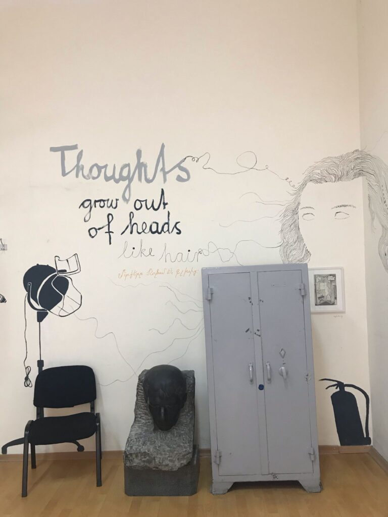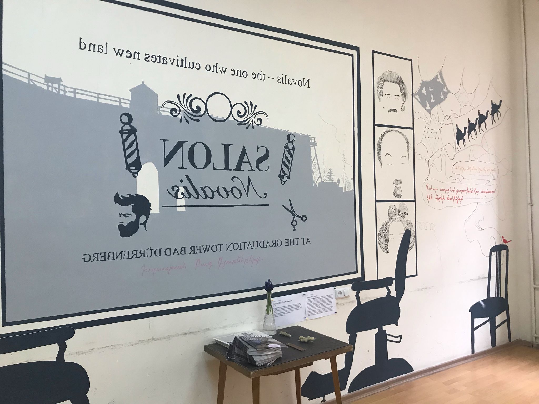 Die Direktorin der Kunststiftung Sachsen-Anhalt, Manon Bursian, sagte: „Anlässlich des 250. Geburtstages von Georg Philipp Friedrich von Hardenberg alias Novalis hatten wir 30 ehemalige Stipendiaten und Stipendiatinnen eingeladen, Widmungen an Novalis zu kreieren. Sebastian Gerstengarbe ließ sich von einem Porträt, den tiefen Gedanken und den Haaren des Dichters inspirieren. So entstand sein Salon Novalis. Ich freue mich sehr, dass diese besondere Arbeit hier in Armenien auf Interesse gestoßen ist und jetzt noch einmal umgesetzt werden konnte.“