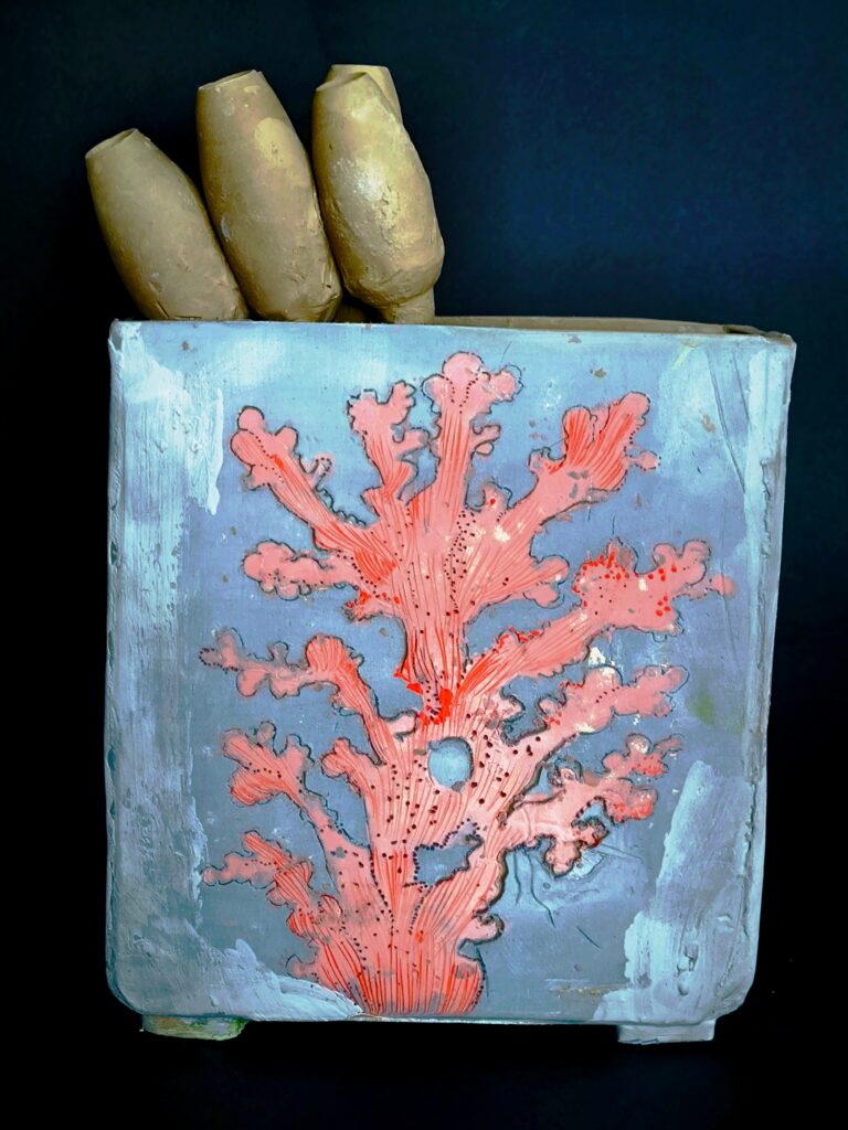 Antje Halter "CALIFORNIAN CORALLIUM RUBRUM", Keramik, aufgebaut, modelliert, gedreht, engobiert, gezeichnet