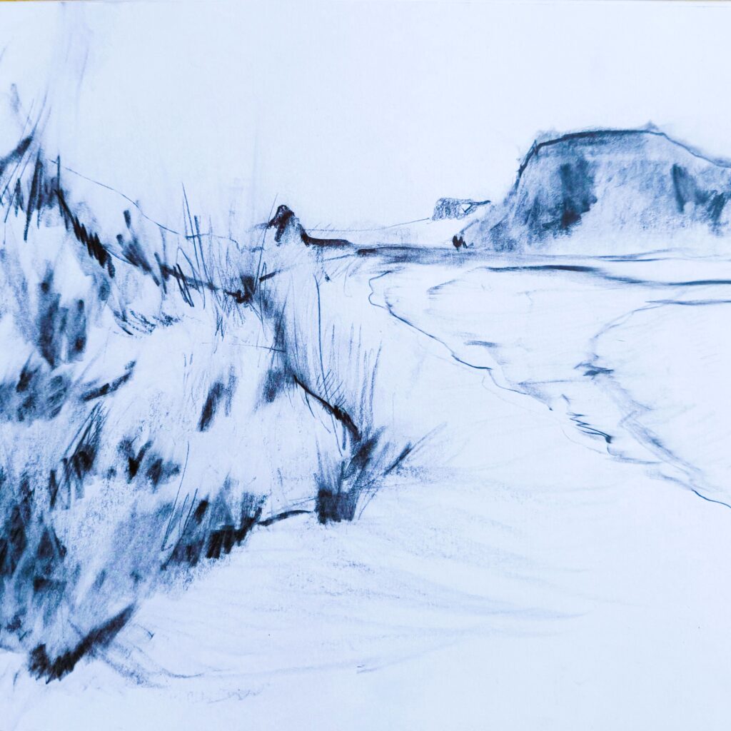 Kalifornische Pazifikküste, Kohle- und Grafitzeichnung