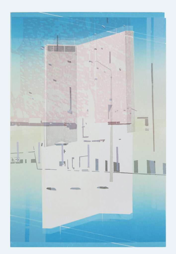 Hallcube, von hinten, Farbholzschnitt, 100 x 70 cm (Papierformat)