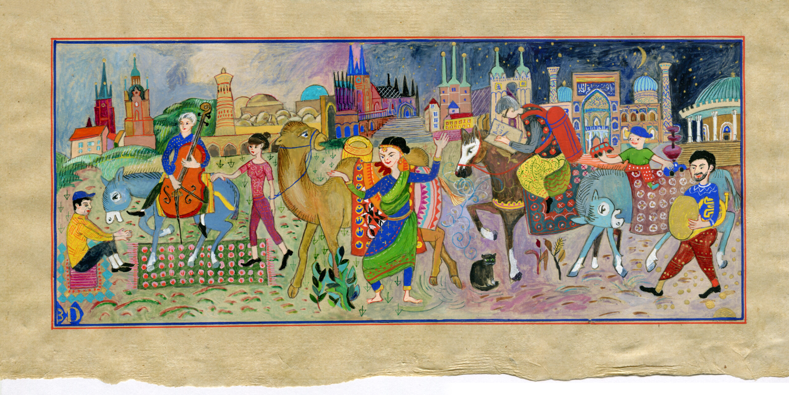 Abschließend betrieb sie Miniaturmalerei bei einem Meister in Bukhara. Es entstand „Zwischen Orient und Okzident“.