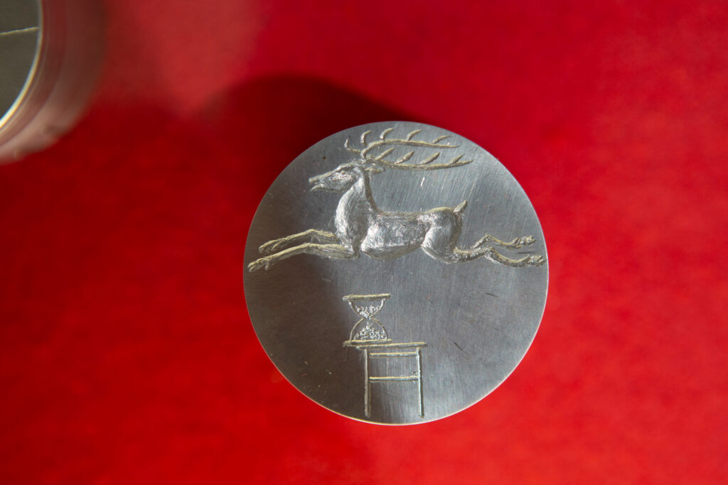 Außerdem gravierte sie einen Prägestempel, der vom Wappentier der Stadt Stolberg, dem Hirsch, inspiriert ist.