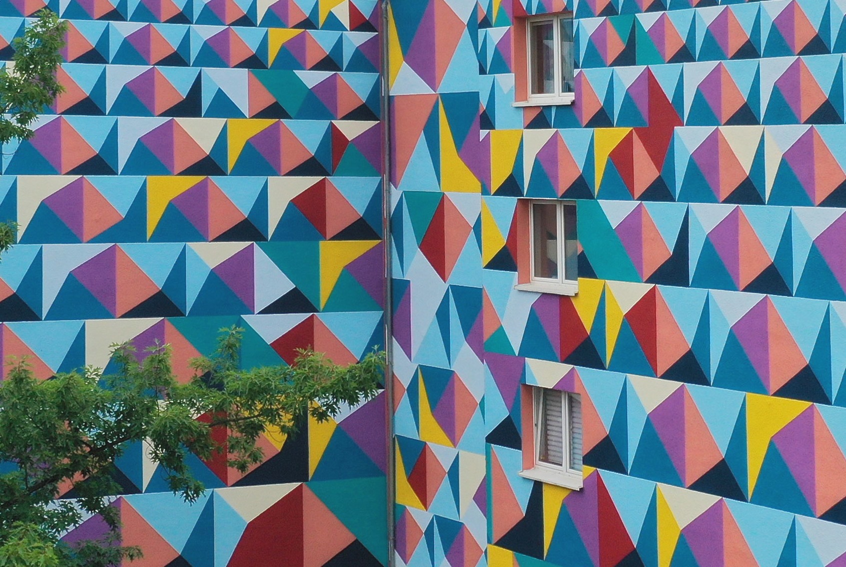 Der Künstler hat ein fundiertes Konzept für Kunst (Neo-Muralismus und Wall & Space) für Halle-Neustadt erstellt: Kunst, die für die Anwohner sozial relevant ist und zugleich einen entscheidenden Impuls für die aktuelle Urban-Art Szene darstellt. Seiner Ansicht nach verhinderten Systemzerfall und mangelnde Ressourcen den – bis heute richtigen und notwendigen – Ansatz, als Kontrapunkt zur statischen Architektur Neustadts möglichst alle Giebelfassaden künstlerisch zu gestalten. Im Rahmen des Konzepts hat der Künstler Leitlinien für die optimale Balance im Umgang mit Kunst im öffentlichen Raum Halle-Neustadts formuliert. Er will dabei an die Tradition sozialistischer Wandgestalter wie Josep Renau anknüpfen und Wände nicht mehr nur als Leinwand sehen, sondern Wege und Blickachsen-Studien und Analysen vom architektonischen und sozialen Gefüge in die Planung von Wandmalerei einfließen lassen. Dazu sollte auch mit Anwohnern das Gespräch gesucht werden. Der daraus entstandene Entwurf für eine Wand (33 x 11 Meter) thematisiert die für Halle-Neustadt traditionsreichen Strukturwände aus Betonsteinen, mit denen sich Teile die Einwohner identifizieren können, andere haben diese nie als Gestaltungselement wahrgenommen. Das natürliche Schattenspiel, das sich je nach Sonnenstand verändernde Erscheinungsbild der Fassade ist ein prägendes und faszinierendes Merkmal des Stadtviertels Halle-Neustadt. Für den Entwurf wurden verschiedene Zahlenrhythmen herangezogen und untersucht (Goldener Schnitt, Fibonacci Folge und clh). Die unterschiedlichen Rechengrundlagen waren mit jeweils unterschiedlichen Abstandsmengen Grundlage für verschiedene Szenarien, die durchgespielt wurden. Entscheidendes Kriterium für den passenden Zahlenrhythmus war eine harmonische Steigerung der Betonsteine, die mit einem extrem kleinen Abstand beginnt und dennoch im letzten Bereich der Giebelwand nicht unrealistische große Maße bedeutet.
