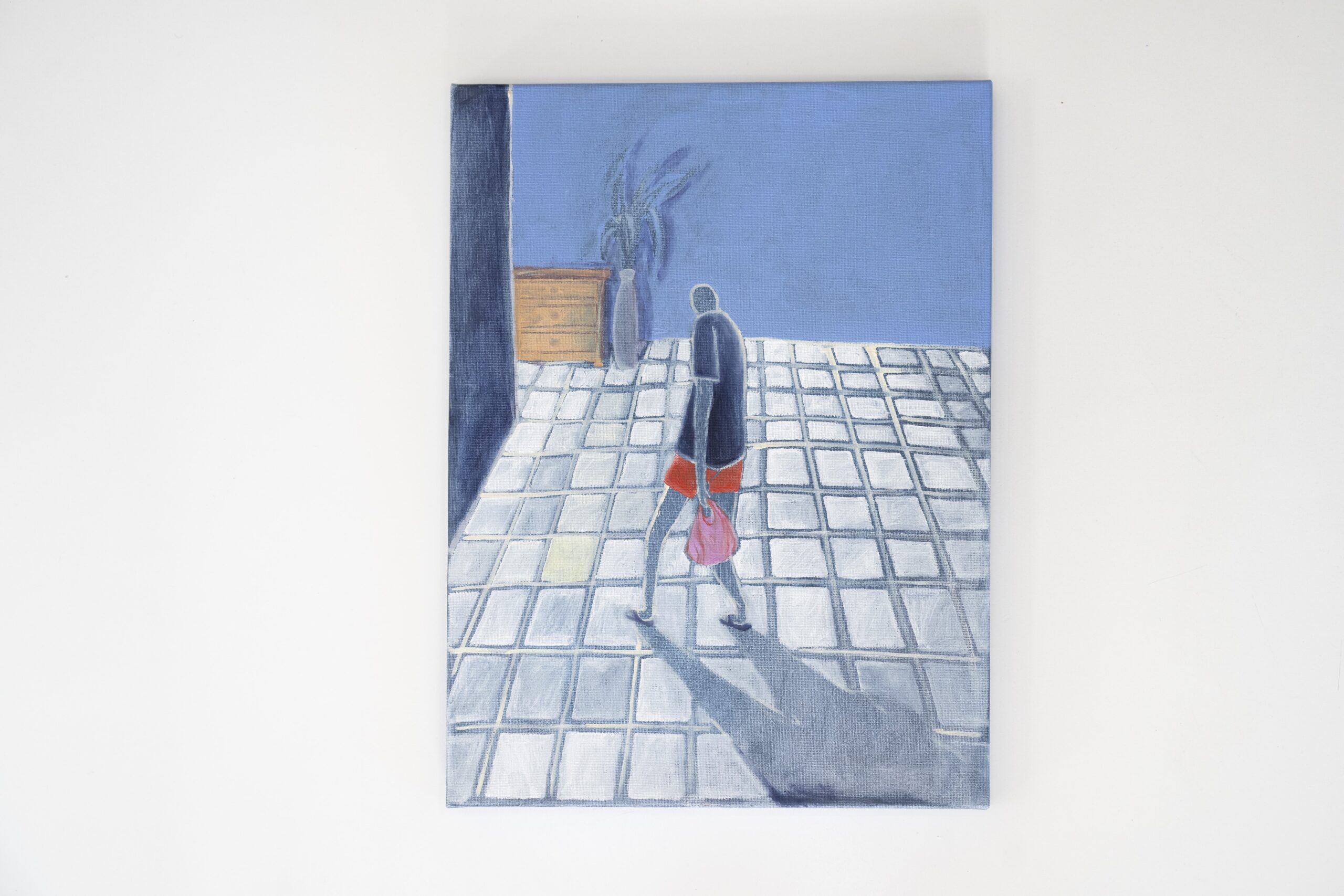 Weitere Motive, wie Müllberge, Plastiktüten, die oft unbeachteten Putzkräfte bei ihrer Arbeit und verlassene, irritierend oder surreal wirkende Orte, spiegeln das Gefühl der Entfremdung und Isolation wider – ein Gefühl des „Fehl am Platz seins“, das sich wie ein roter Faden durch die Arbeiten zieht.
