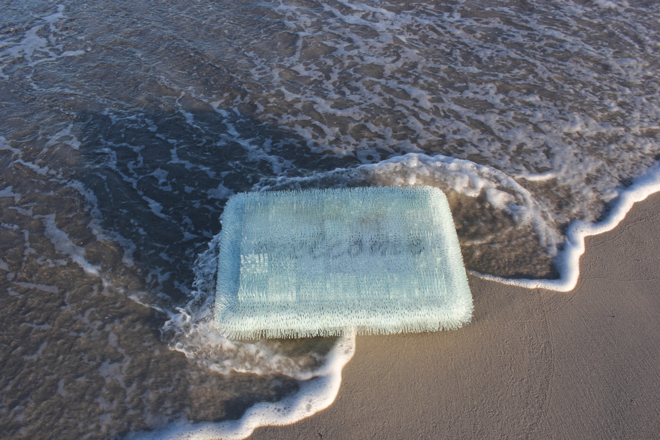 Das Glasobjekt „Schwelle“ ist eine Art Fußabtreter aus Glas mit der Inschrift „welcome“. Es besteht aus über 6200 geschnittenen und verklebten kleinen Glasstreifen. Die dazugehörige Videoinstallation zeigt das Objekt am Strand. Auf den ersten Blick vermittelt der „Fußabtreter“ durch seine Inschrift „welcome“ eine einladende Botschaft, die den Betrachter dazu einlädt, einen Raum bzw. einen Ort zu betreten. Doch die Wahl des Materials – Glas – bringt eine subtile Komplexität mit sich. Glas ist sowohl zerbrechlich als auch transparent, was symbolisch für die Fragilität von sozialen Beziehungen und die oft durchsichtigen, aber dennoch verletzlichen Strukturen innerhalb einer Gemeinschaft steht. In einer Zeit, in der gesellschaftliche Spannungen durch Themen wie Migration, Identität und Zugehörigkeit verstärkt werden, wird die Inschrift „welcome“ zu einem ambivalenten Statement. Sie fordert den Betrachter heraus, über die Bedeutung von Gastfreundschaft und Exklusion nachzudenken. Wer wird wirklich willkommen geheißen? Und unter welchen Bedingungen? Der „Fußabtreter“ fungiert somit als kritisches Kunstobjekt, welches seinem Zweck durch das spitze, verletzende und zerbrechliche Material enthoben wurde und dadurch die Widersprüche und Herausforderungen unserer Gesellschaft reflektiert. Die Transparenz des Glases kann auch als Metapher für die Offenheit und den Dialog zwischen verschiedenen Kulturen und Gemeinschaften interpretiert werden. Gleichzeitig birgt es die Gefahr des Zerbrechens, was die Fragilität von Frieden und Harmonie in einer pluralistischen Gesellschaft verdeutlicht. In diesem Sinne wird der „Fußabtreter“ zu einem Symbol für die Balance zwischen Einladung und Abgrenzung, zwischen Integration und Isolation. Die Präsentation des Objekts „Schwelle“ inmitten eines Raumes und im Video am Stand, enthebt den „Fußabtreter“ von seiner erdachten Funktion. Er wird somit zum nicht definierten Objekt und lässt weitere Assoziationen zu. Diese Uneindeutigkeit erweitert den Möglichkeitsraum für Gedanken und Diskussionen. Das Objekt „Schwelle“ lädt ein über die Art und Weise nachzudenken, wie wir als Gesellschaft miteinander umgehen und welche Werte wir hochhalten. Es ist ein Kunstobjekt, das sowohl zum Nachdenken als auch zur Diskussion über die Herausforderungen und Möglichkeiten einer inklusiven Gesellschaft einlädt.