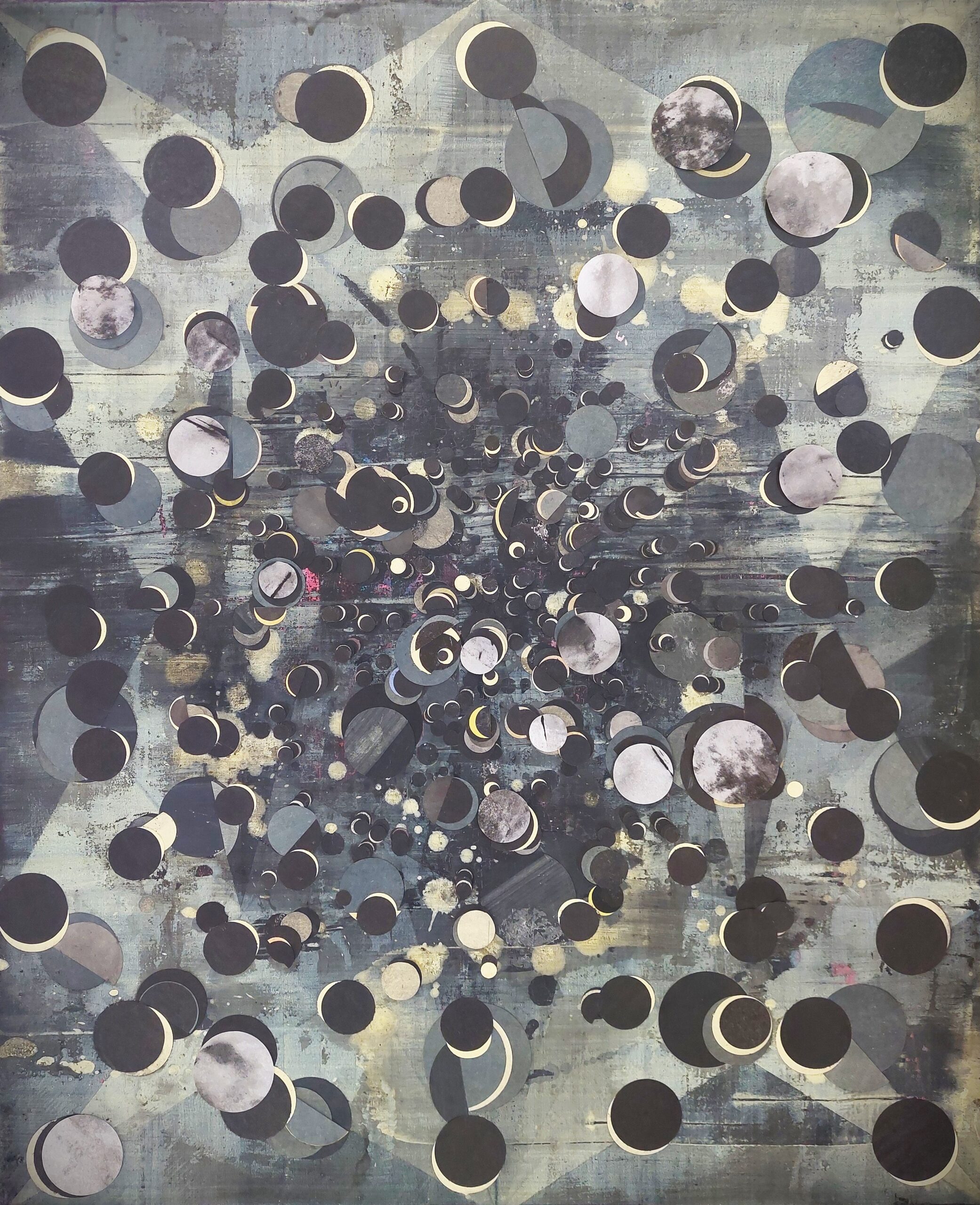 Alle Arbeiten der Serie sind eine Metapher für den Abgrund. So wie man Wasser aus einem sehr tiefen Brunnen schöpft, so schöpfte sie die Bilder aus einem tiefen verborgenen Ort in sich. Es ist, als würde sie ihr eigenes Universum zum Ausdruck bringen. So wie sich die Sternenkonstellation jeden Monat leicht verändert, gibt es auch in ihren Arbeiten subtile Variationen innerhalb einer ähnlichen Struktur. In den Werken, die ausschließlich aus sich überlappenden Pinselstrichen und schwarzen Flächen bestehen, sieht sie die Spiegelung einer universellen menschlichen Sehnsucht nach etwas Dauerhaftem – nach etwas, das jenseits der kognitiven Fähigkeiten liegt.
