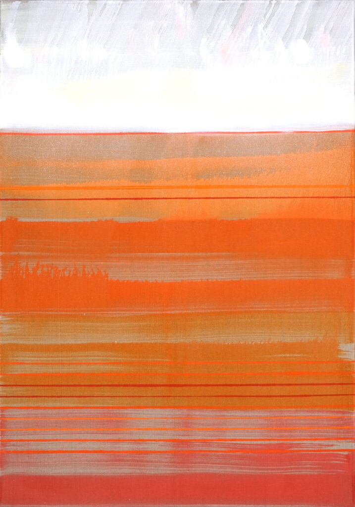 Durch die Reduktion der Farbigkeit auf Orange mit blauen Akzenten wird die Vergangenheit in einer abstrakten, zeitlosen Form vergegenwärtigt. Die Arbeiten schaffen einen Erinnerungsraum, der nicht dokumentarisch, sondern emotional und empathisch wirkt. Ziel ist es, verdrängte Geschichten und kollektive Erfahrungen dieser Epoche sichtbar zu machen und zugleich einen universellen Zugang zu Themen wie Verlust, Wandel und gesellschaftlicher Verantwortung zu eröffnen.
